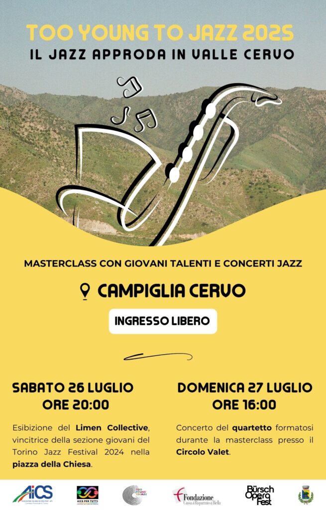 “Il 26 luglio 2025 il borgo montano di Campiglia Cervo si trasforma in palcoscenico per i giovani protagonisti del jazz italiano con TOO YOUNG TO JAZZ, la rassegna dedicata ai talenti emergenti della scena jazz nazionale.